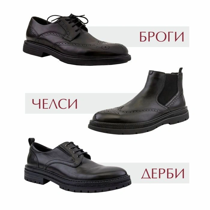 Ботинки-дерби - ботинки, у которых шнуровка начинается от самого носка и заканчивается на верхней части ботинка. Они часто имеют более грубый вид и могут быть кожаными или замшевыми.
