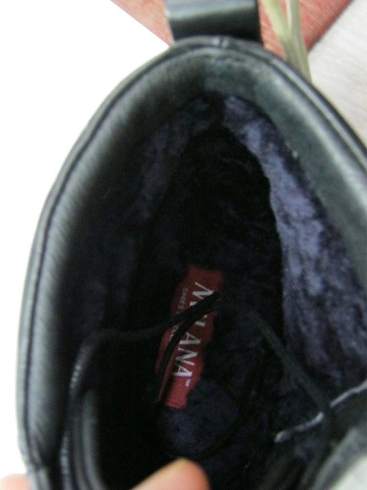 Ботинки красивые, сделаны качественно,современно, из хорошей кожи, подошва резиновая не скользкая, мех средней полноты (не тонкий и не густой), на ноге сидят удобно, теплые.Снимать только не совсем удобно.Единственный недостаток слишком завышенная цена.Размер соответствует (мерил 41 и 42 размеры).Из всех перемеренных купил эти за 6490 рублей.