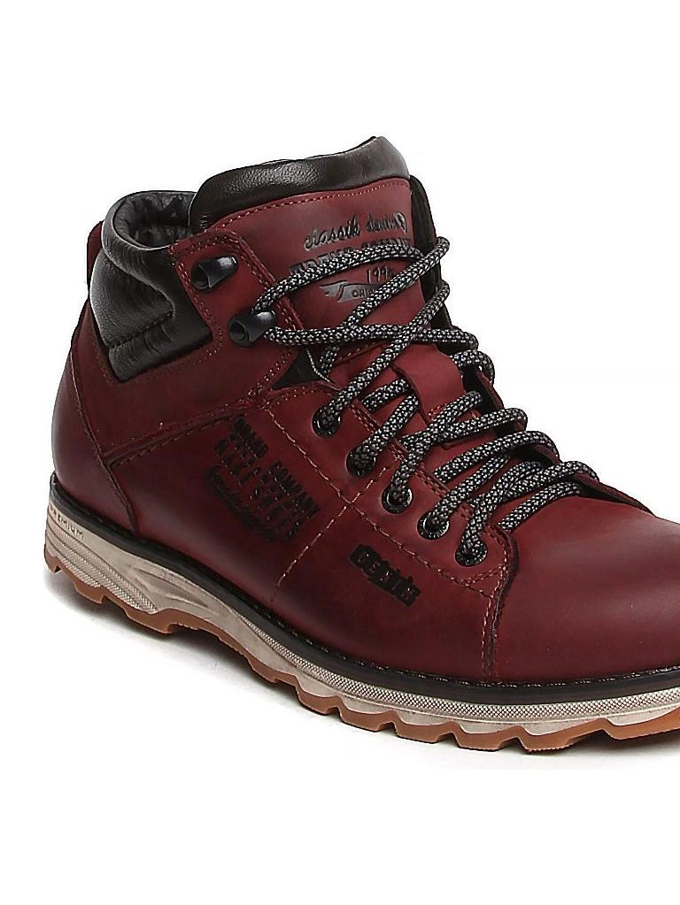Ботинки зимние из натуральной кожи крейзи от компании Milana. Отлично подойдут на холодное время года: зиму, позднюю осень, раннюю весну, демисезон. По-другому называют кроссовки. Ботинки позволят ногам находиться в тепле и комфорте, так как внутренняя часть подкладки выполнена из натуральной шерсти. Современный стиль отлично подходит для мужчин, юношей, мальчиков. Ботинки представлены в бордовом цвете, подойдут под любой образ и стиль одежды. Высота подошвы средняя, отлично сочетается с брюками, джинсами. Такая обувь легко впишется в любой образ от делового до повседневного. Сочетание комфорта и стиля на зимние и осенне-весенние дни. Ботинки предназначены для повседневных прогулок, в школу и университет, на работу, в офис. Рекомендуем эту модель не только из-за внешнего вида, но и в том случае, если Вы ищите надежную теплую обувь. Отлично подойдет как для тех, кто любит классическую обувь в образе, так и для тех, кто любит спортивную обувь, удобную для вождения автомобиля. Комфортная колодка, плотно фиксируется на ноге благодаря шнуровке. Ботинки выполнены из высококачественных материалов, они утеплены, непромокаемы и модные. Натуральная кожа премиум класса позволяет проходить воздуху через материал, поэтому ему не страшны сгибы и растяжки. Ботинки имеют закругленный мысок. Толщина подошвы средняя на холодную погоду. Современный материал термоэластопласт не скользит на разных поверхностях, устойчив к низким температурам и истиранию. Превосходные амортизирующие свойства материала позволяют избежать усталости ног при ходьбе. Зимние ботинки на устойчивой подошве, которые подойдут для полной, для узкой стопы и будут удобны для ходьбы по льду и грунту. Дизайн модели разработан в Италии. Отлично подойдут в качестве подарка вашему супругу, папе, брату, молодому человеку, другу или сыну на любой праздник такой как Новый год, Рождество, День рождения, 23 февраля.