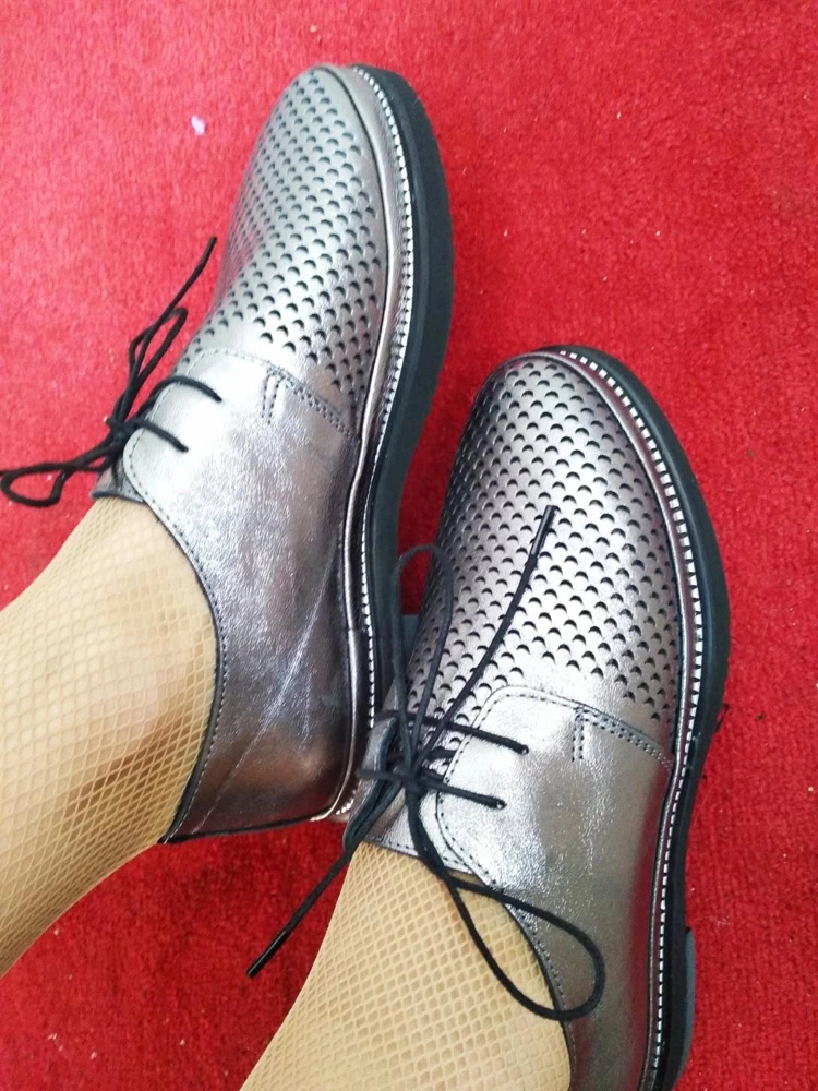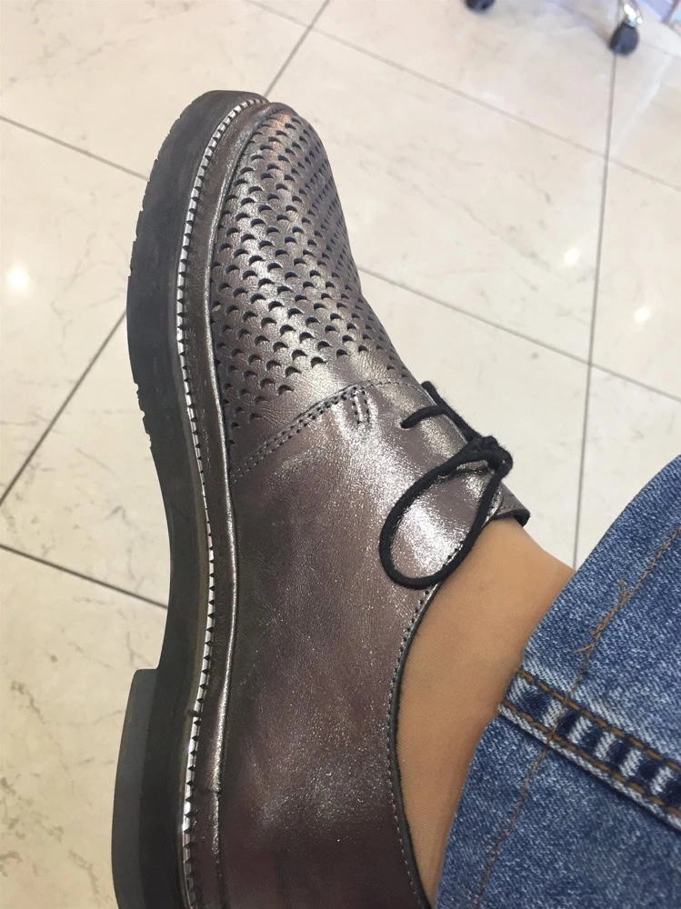 Полуботинки без нареканий, придраться абсолютно не к чему! В размер, мягкие, красивые, фото соответствуют полностью. На узкую ножку сели замечательно, выглядят миниатюрно, качественно. Стелька с претензией на анатомическую)) Перфорация сквозная. Рекомендую!!!