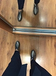 Чтобы измерить длину ступни, необходимо встать на ровную поверхность, слегка касаясь пяткой находящейся сзади перпендикулярной ровной поверхности, например, стены без плинтуса.