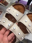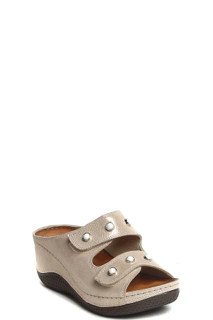 Эти босоножки - находка для широких ног с большими косточками! Мама все время брала 41 размер, т к на косточке все давило, хоть по длине стопы у нее 40. А эти, за счет липучек можно делать шире, если косточки отекли. Они достаточно аккуратно смотрятся на ноге, даже с учетом размера и косточек. Красивый бежевый цвет, слегка отдающий золотистым. В общем, мама довольна!