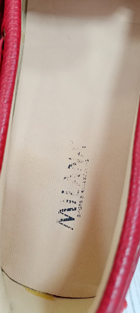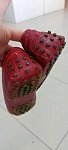 Мягкие, но узковаты... Пахнут хорошо, кожей. Надпись на стельках стёрта, то ли уже носили, то ли столько народу перемерило... Зелёные шипы конечно на любителя. Размер соответствует.