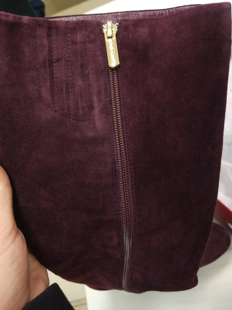 сапоги шикарные. цвет немного другой в реальности, ближе к фиолетовому. но к сожалению оказались узки в стопе, хотя колодка устойчивая, удобная. и в самом верху не застегнулись в голени. очень жаль, не на полные икры. скорее на средние