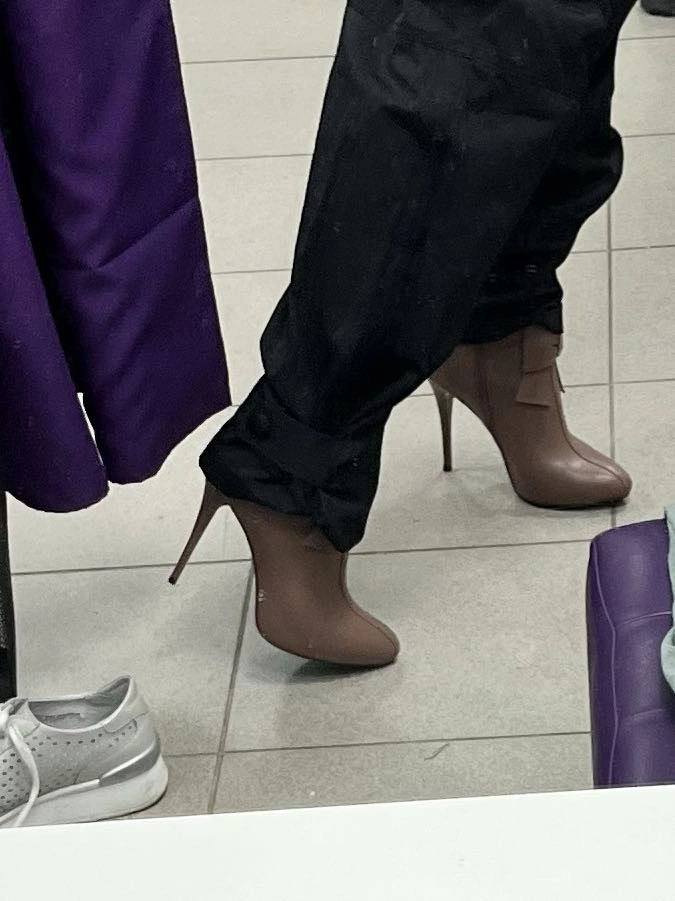 Неожиданно удобные ботильоны для такой высоты каблука! В жизни действительно темнее, чем на фото, но очень приятная расцветка. На полразмера большемерят. Рекомендую!