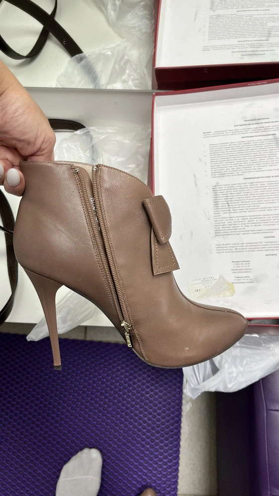 Очень красивые, но только на узкую ножку, на мои 26 см 41 был узок, хотя другие ботильоны этой марки 41 был велик, странно... Исполнение отличное, упакованы добротно, даже набойки запасные были!Очень жаль, но отказ. Завидую кому подошли...