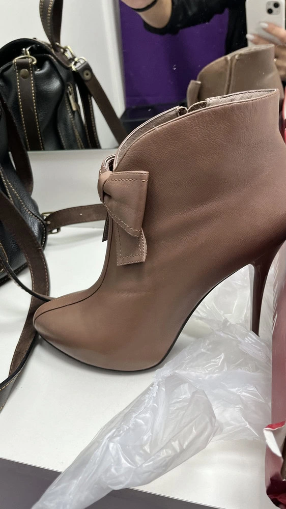 Ботильоны прекрасные. К сожалению, большемерки. Взяла 37 на свой 36,5 - велики, но все равно оставила, т.к. красивые и очень удобные, и меньшего размера нет.