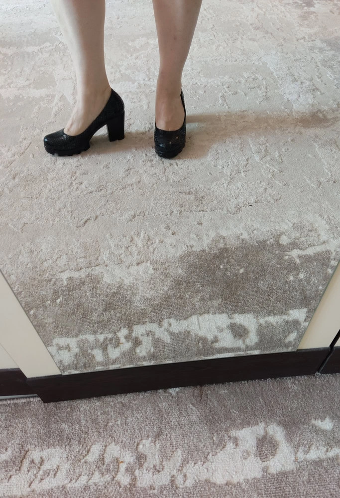 Туфли красивые, каблук вообще не ощущается. Но! там так скругленно сделан задник, что верх впивается, а под ним остается пустое пространство. Из-за этого стопа проталкивается к мыску и жмет в пальцах. Брать на размер больше не вариант, будут слетать. Но и так ходить будет некомфортно - натрут, да и пальцы болеть будут. Отказ поэтому. А так - на ноге смотрятся изумительно, еле рассталась!