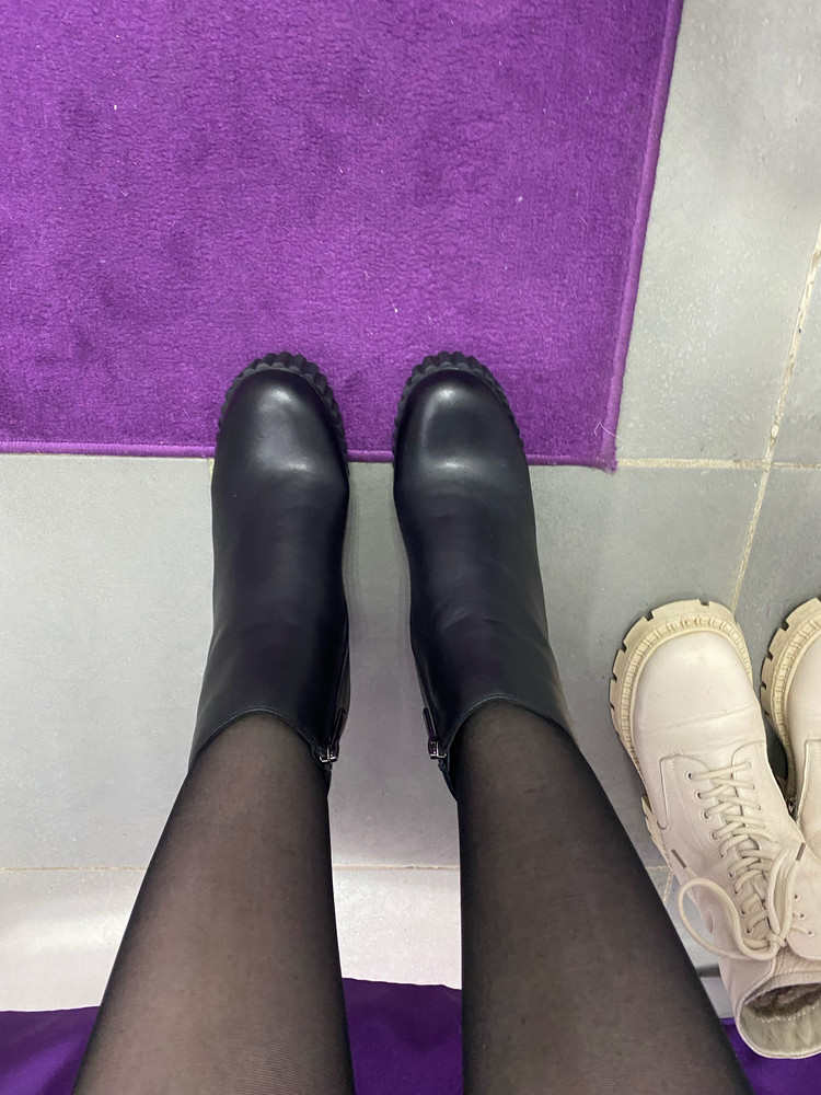 Очень классные ботинки, но увы возврат буду делать, большимерят, буду ждать 39.. а так очень понравились. Удобный каблук, кожа плотная