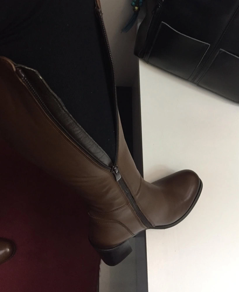 Сапоги 40р.на 26 см очень туго налезли,я бы скозала только только ,так что ориентируйтесь на свой привычный размер.стопе туго,они узкие,на голень 34 см застегнулись немного места осталось.у меня возврат так как порезана кожа возле молнии и прошита нитками думаю это на стадии изготовления еще случилось.