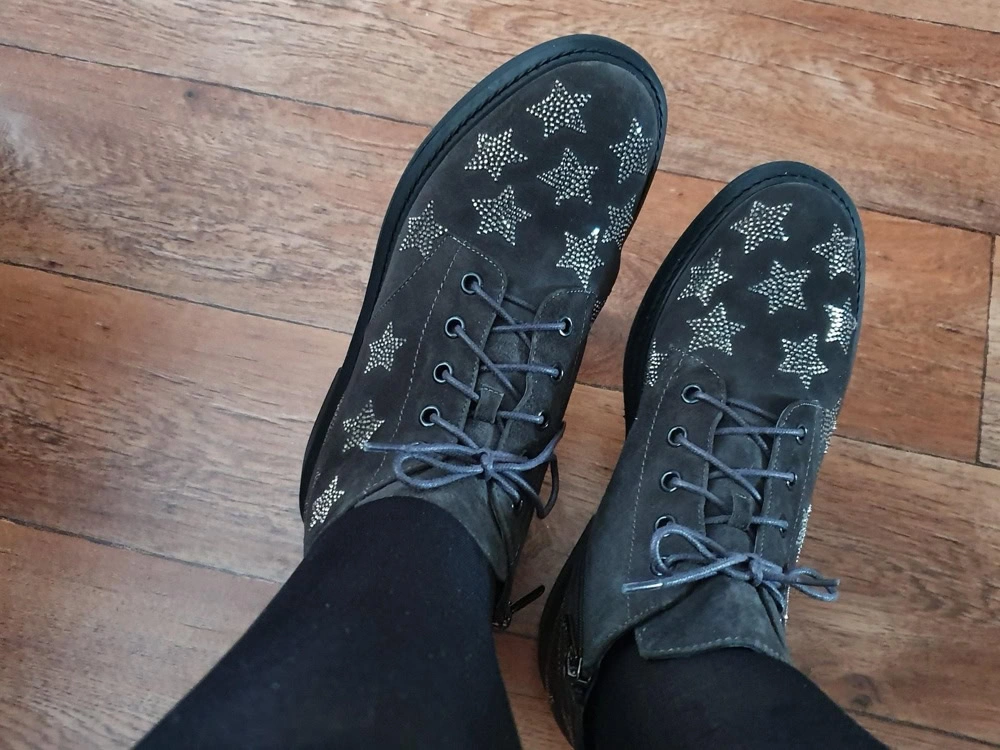 Классные добротные оригинальные ботинки!На стопу 25 взяла 38раз,как рекомендовано.Звездочки хороши!Довольна.Живу в Крыму, в таких ботинках у нас можно ходить и зимой.Рекомендую к покупке