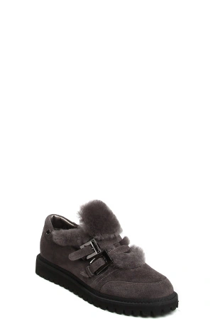 182183-2-211F полуботинки жен. дем. натуральная кожа (велюр)/натуральный мех/термоэластопласт серы