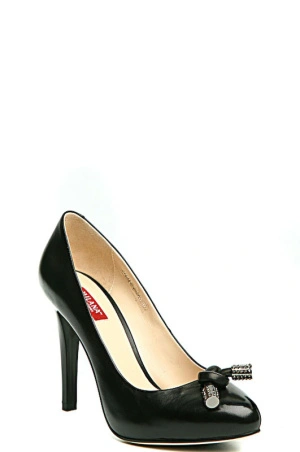 Классические черные туфли на каблуке-шпилька. Отлично подойдут для строгих образов, так же офисного стиля и женственных нарядов. Мысок декорирован аккуратной завязочкой с металическими украшениями, закруглен. Высота каблука подчеркнет стройность Ваших ног.