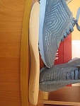Кроссовки пришли хорошо упакованные, чистеньким. Жаль только не подошли) Я ношу 37 размер, а они большемерят, на ноге повисли. К внешнему виду претензий нет. Но не удалось составить мнение по удобству, т.к. не только в длину стопы, но и по объему большеваты. Жаль.