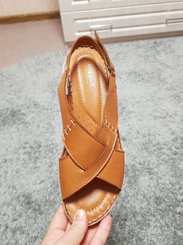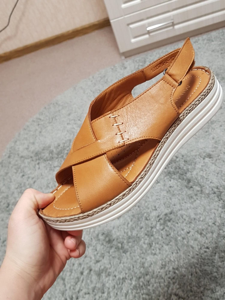 Замечательные сандальки. В размер, легкие, мягкие, удобные. Цвет не такой рыжий, как на фото, чуть спокойнее.Рекомендую, на высокий подьем замечательно