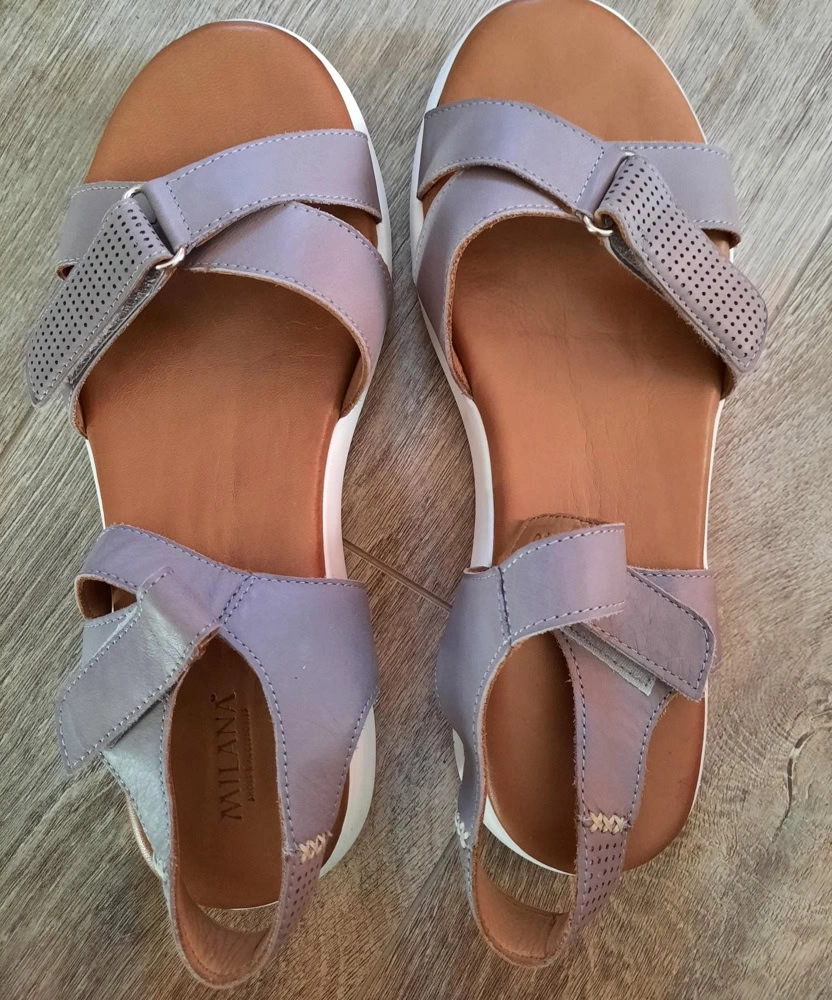 Мягкие,кожа,на свой 39 подошли 40 в длину,но не сели по ноге,широкими оказались,ремешок на пятке соскакивал,не утянуть,и из-за подошвы тяжеловаты,но понравились.Отказ в пользу других.