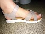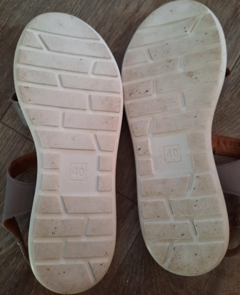 Попалась бракованная пара. На левой ноге перемычки сильно шире, чем на правой, поэтому правая сандалия села идеально, а левая болтается, ходить неудобно. Пришлось отказаться.