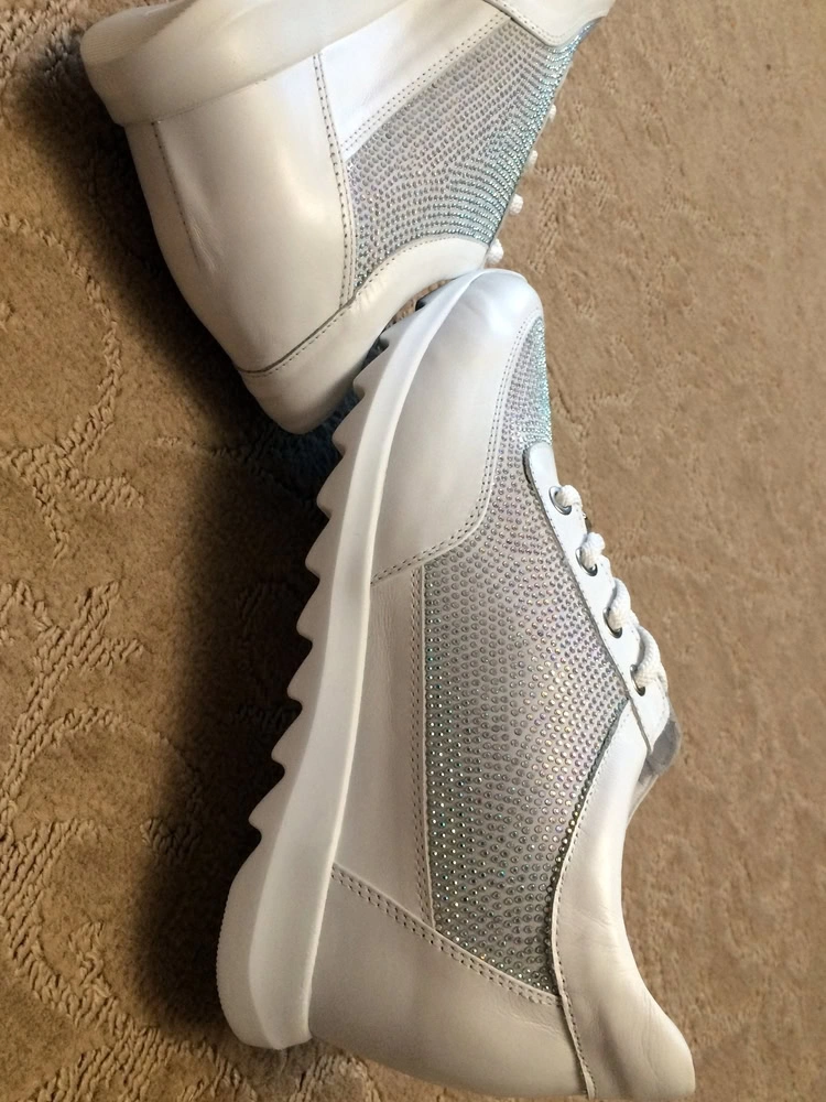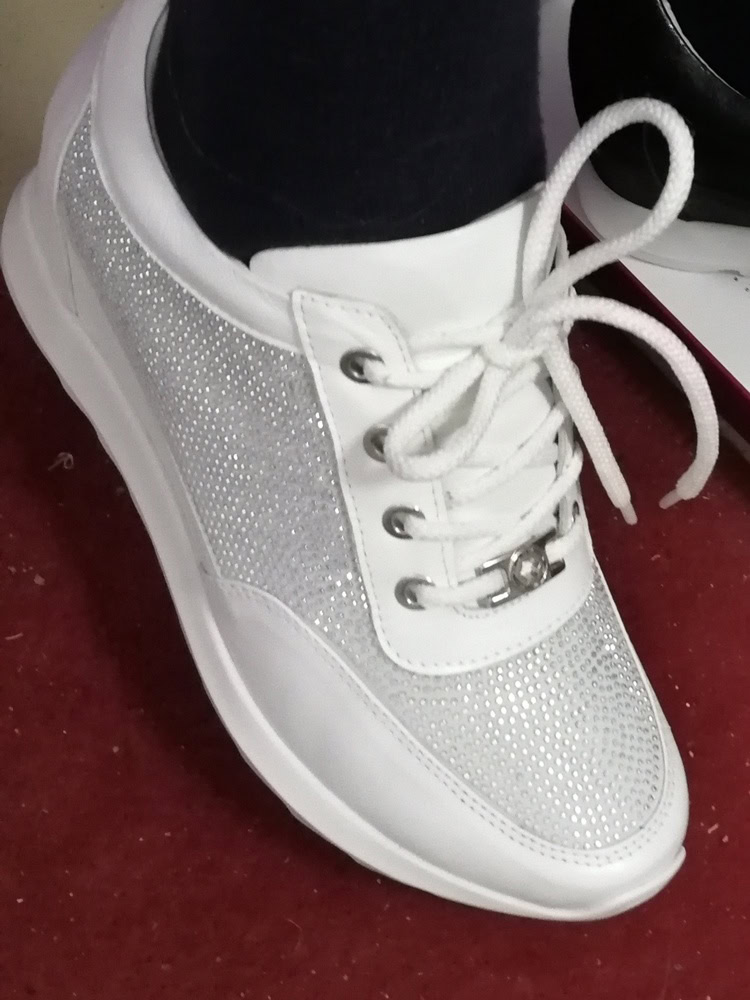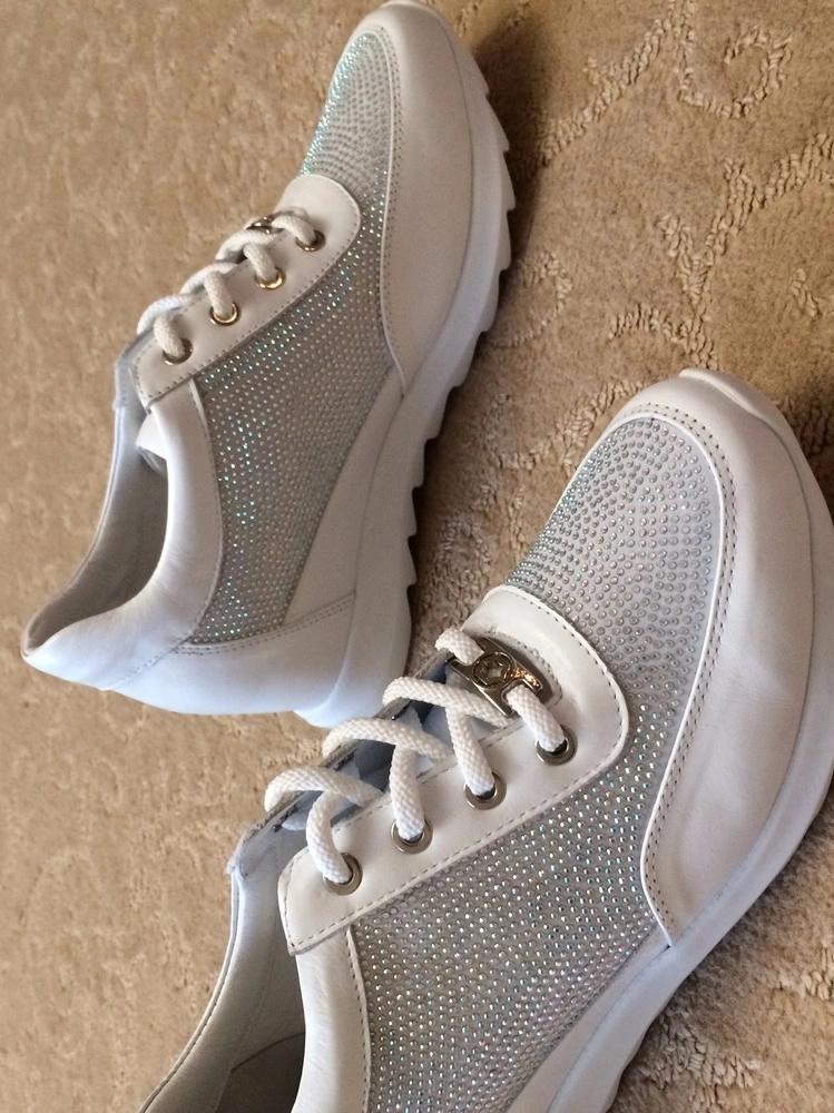 Сначала расстроили неровности на коже - заметны внутренние швы, но на ноге смотрятся супер: аккуратно, не увеличивают зрительно ногу, хотя комфортно моим проблемным ногам с косточкой. Муж сказал, что смотрятся дорого и красиво. Мы довольны. Еще они очень легкие, взяли за 8 тысяч с копейками. Стразы все на месте, держатся крепко.