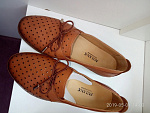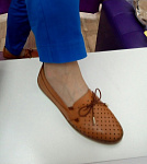 Отличные туфли. Мягкая кожа. Цвет порыжее вживую. По верху сделана перфорация насквозь. Шнурок-резинка в дополнение к двум резинкам-вставками для удобного надевания, при желании можно отрегулировать ширину. Есть такие же в синем цвете. Но маломерят примерно на полразмера, сравнила с другими туфлями этой же фирмы. Достались за 4193. Вернуть все равно пришлось.