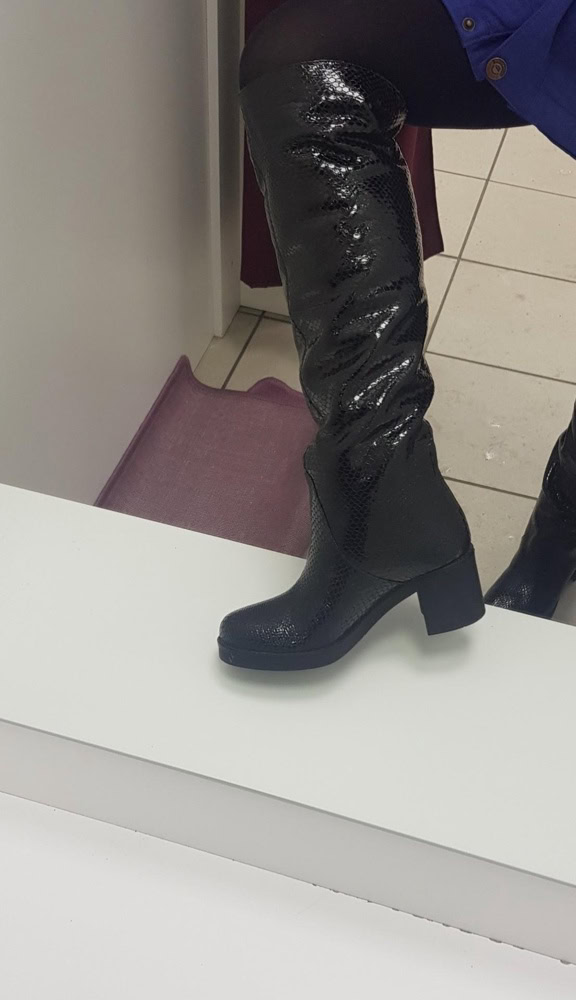 Заказала просто померить, а купила именно их. Не знаю как будут носиться, но очень удобнве, не ожидала, каблук не чувствуется, голенище широкое, стильно смотрится и с джинсами и с юбкой.