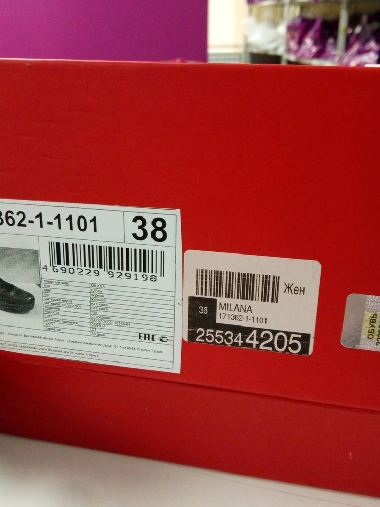 Туфли отличные. Мягенькая кожа, удобнейшая колодка, качество прекрасное. Но! Маломерки, причем странные. На родной 38, заказанный 38 оказался маловат. Похожие туфли той-же марки, но 39 размера (арт.3869508) по ощущениям немного великоват (их оставила на случай отечных ног или длительных пеших прогулок). Резюме: туфли брать, но на широкую ногу и размер больше обычного.