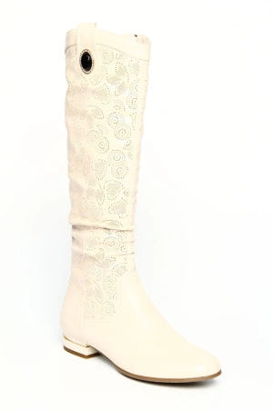 131406-1-16315 сапоги жен. дем. стрейч (экокожа)/ворсин/ТЭП (термоэластопласт) молочный Milana
