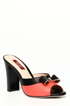Открытые сабо на не большом устойчивом каблуке - прекрасный вариант обуви для летнего гардероба. Верх и внутренняя подкладка модели изготовлены из натуральной мягкой кожи. Мыс сабо декорирован элегантным кожаным бантом с металлическими вставками. Стелька украшена логотипом бренда. Легкие натуральные материалы и удобная колодка обеспечивают обуви идеальную посадку на ноге.