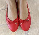Спасибо! Отличные балетки. Длина моей стопы 25,5 см, выкупила размер 39. Кожа мягкая, натуральная. Не давят, комфортные, удобные, мягкие. Бантики пришиты +приклеены на своём месте прочно. Немного красят, но меня это совсем не смущает. Покупала за 1541₽.