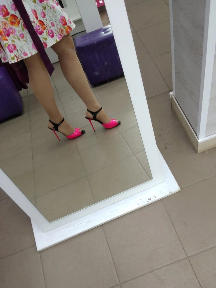 Они правда как тапочки! Хотя сколько мерила эту марку, всегда неудобные были босоножки, так что не верила отзывам, что они не ощущаются. Но это так! Такая шпилища и не чувствуется. Сбоку выглядят очуменно, илут в размер, нога у меня не узкая. К сожалению отказ, слишком ядреный цвет, никуда. Были бы они чуть нежнее, эх!