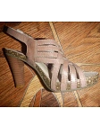 Очень большие надежды возлагала на эти босоножки, т.к. подбирала к платью. Фасон классный, на ноге смотрятся шикарно. Жаль только, что цвет не соответствует фото. В реальности они более бледные. По качеству средние. Ремешки не плотно прилегают к платформе, всё таки нужно было изготовителю проклеить или прошить для дополнительной жесткости.