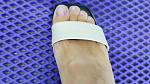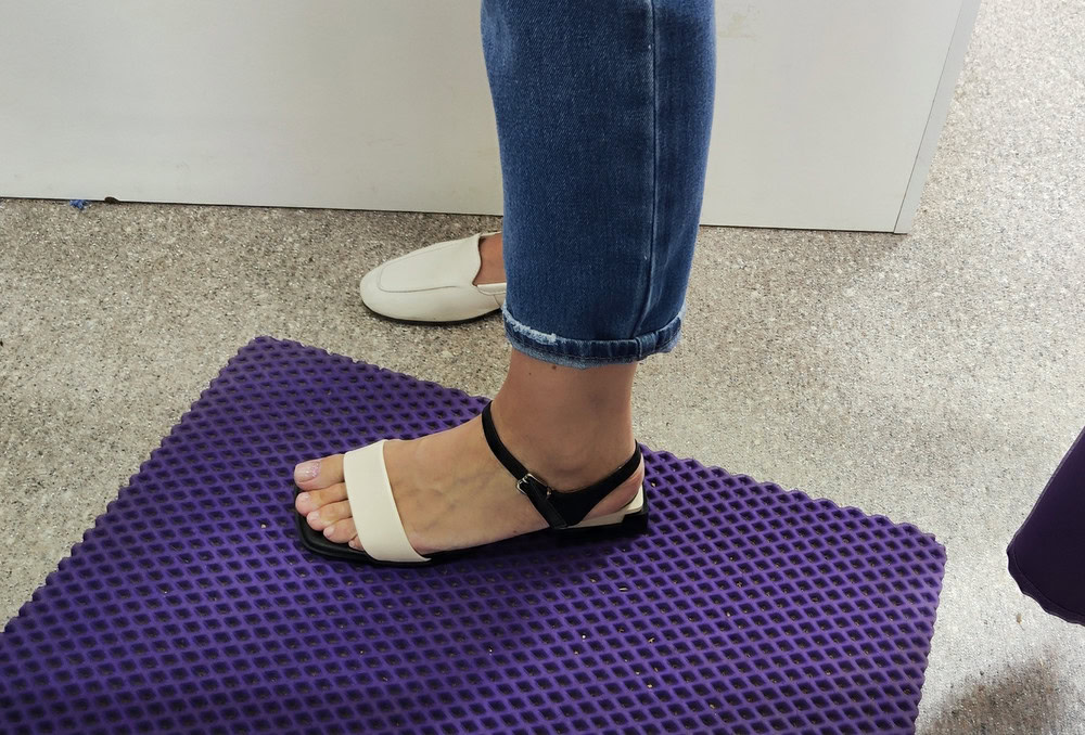 Чтобы измерить длину ступни, необходимо встать на ровную поверхность, слегка касаясь пяткой находящейся сзади перпендикулярной ровной поверхности, например, стены без плинтуса.