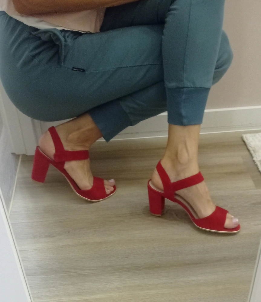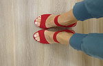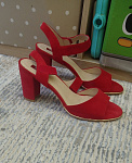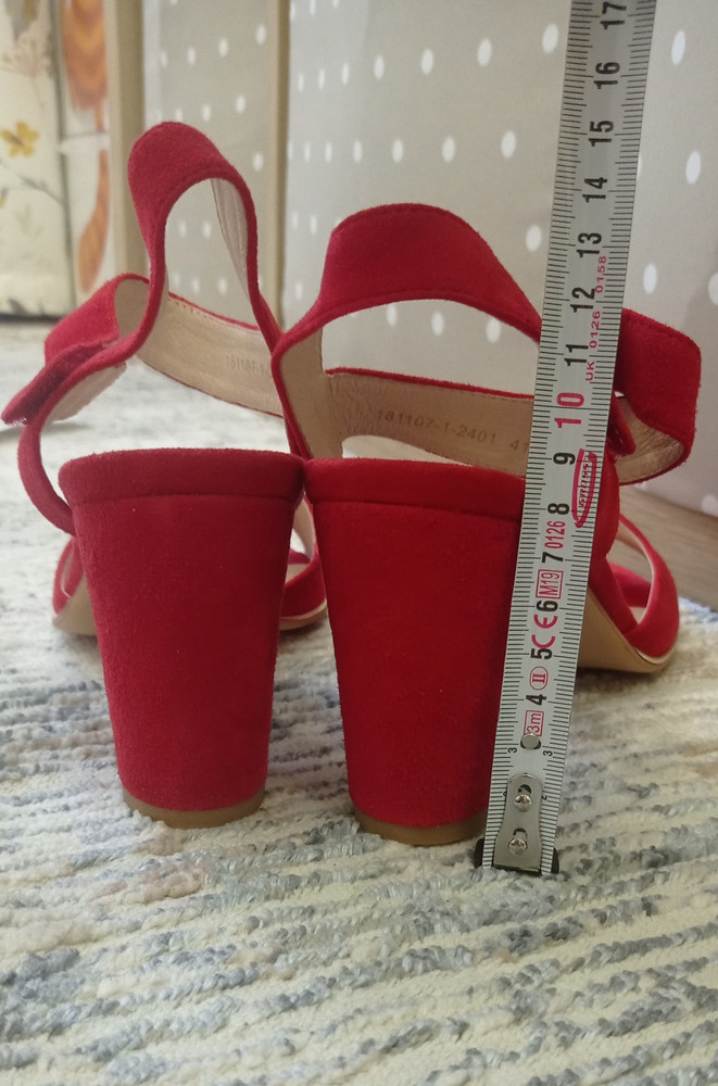 Красивые яркие босоножки. На стопу 26,5 см подошли идеально. Цвет не алый, а классический красный. Каблук высоковат, но как ни странно при ходьбе не чувствуется. Единственное будет натирать шов на большом пальце, пластырь первое время обязательно понадобится. А так очень красивые и удобные. Липучка кстати держит отлично! Сама переживала за этот момент)))