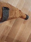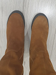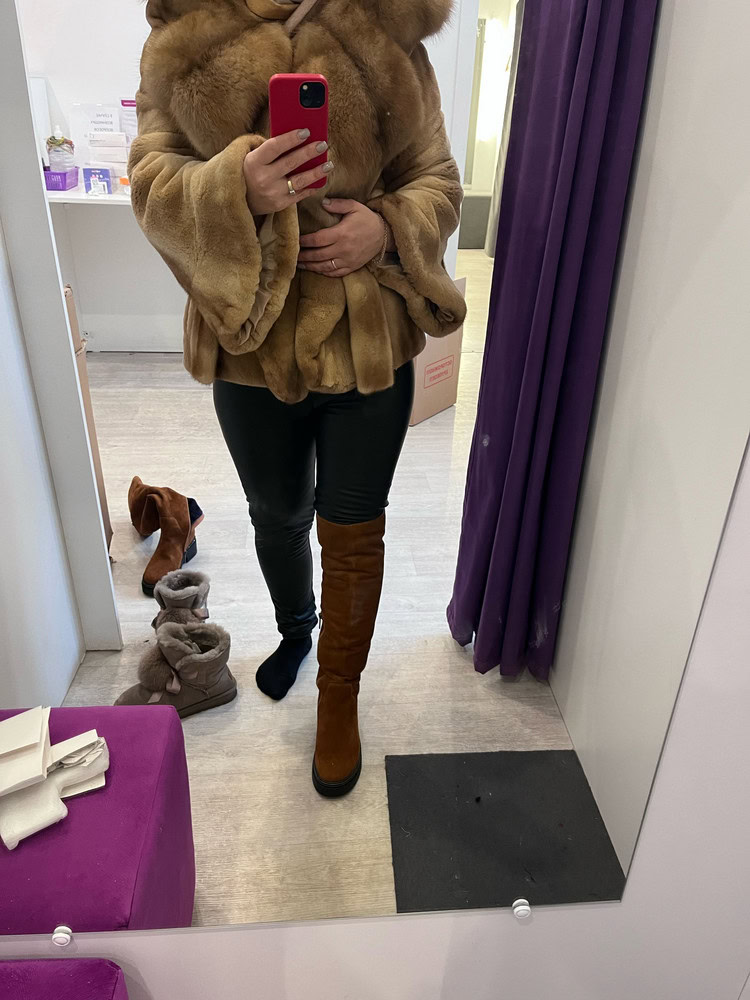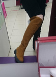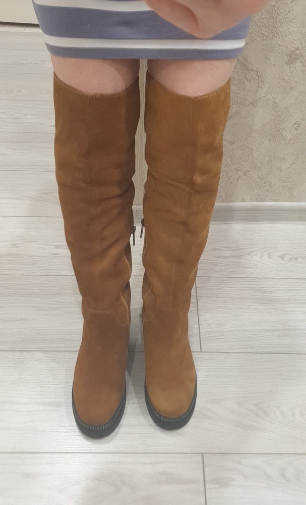 Сапоги НЕ маломерят, чётко в размер согласно таблице!!!! На узкую стопу без подъёма в аккурат 39 й размер. Если нога широкая, берите на размер больше. Мех не заросли конечно, жидковат, но подошва мощная, будет тепло. Замша хорошая. Из минусов - это цвет. Обычный светло коричневый, как на моём первом фото - типа цвета детской неожиданности, ближе к коньячному. Пачкаться будет только в путь. Два других фото со вспышкой - там цвет тона на два ярче, чем в реальности. Так ждала ботфоты. Разочарованна.