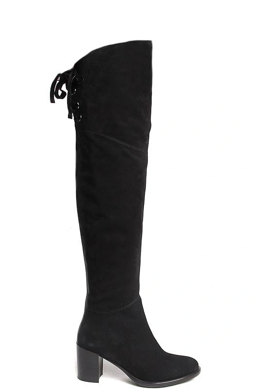 Мне сапоги очень понравились. Это настоящие ботфорты, которые закрывают колено. На рост 165 выше колена на 10 см. При заказе учитывайте, что они большимерят на 1 размер, ни стала снимать звезду из за этого, просто имейте ввиду. Мой размер 37. Заказала 37 и 36. В 37 нога болталась и в длину и по полноте, 36 сел как надо.Выглядят очень эффектно и выгодно стройнят ножки. Выше колена можно регулировать полноту шнурком. Был отзыв про плохое качество замши... мне пришли сапоги с нормальным качеством замши, ярко черного цвета. Я довольна.