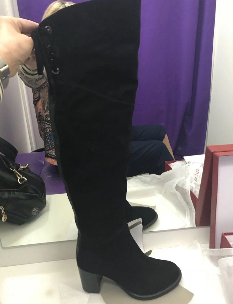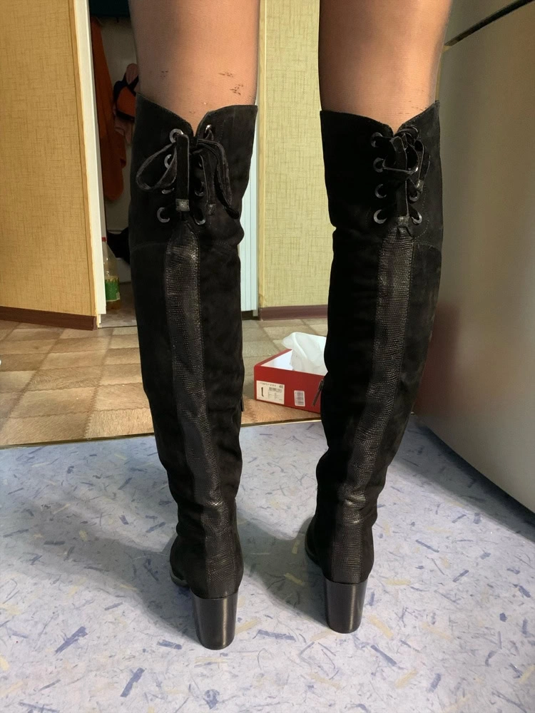 Действительно ботфорты отличные, соответствуют описанию. Хорошая замша, не затертые, в аккуратной коробке. Но! Маловаты! ((( Послушала предыдущие отзывы. Моя стопа 24,5( но широковата) , объём голени -36. Сапоги одела только на стопу- и то очень жмут, а потом и вообще не влезли. К сожалению- отказ.