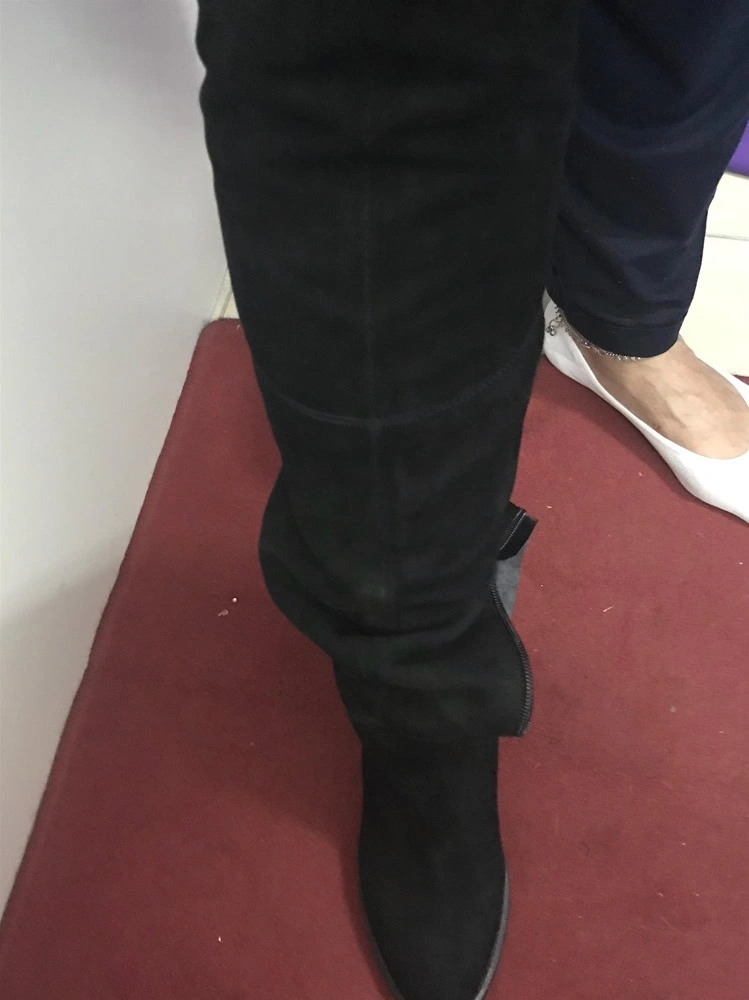 Сапоги очень понравились по качеству и колодка очень удобная, НО, я смогла засунуть в прорезь молнии ногу только до икры, верхняя часть ботфорта не полезла выше вверх никак, даже после расшнуровки, то есть верх оказался на уровне колена, дальше слишком узко. Икры у меня абсолютно нормальные, однозначно, но здесь, видимо на совсем стройные икры. Очень жаль, качество хорошее.