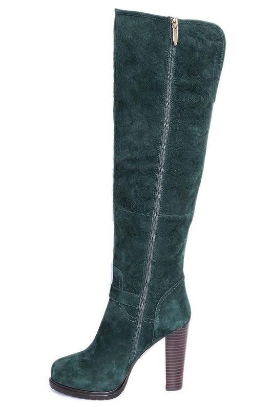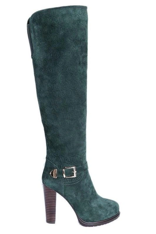 Ну, девушки, не знаю, кто эти сапоги назвал ботфорты, мне они даже до коленки не достали, и очень широкие в голенище, но качество хорошее, но для меня еще и каблук великоват и не удобен, а вот цвет под пальто Одри отличный, красивый зеленый, отказ.
