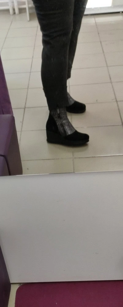 Сапоги мне очень понравились! По ширине стопы 23 и по голени 29 сел хорошо 38 размер! Ношу 37! Маломерят ! Ну это мои ощущения! Мех довольно толстенький, замша и кожаная вставка мягкие и красивые! Мне показалось, что из за двух замков , которые оба действующие, у меня не хватило подъёма и возле замков кожа собиралась! Хотя со стороны не заметно ! Каблук просто мега удобный и из за высокой подошвы невысокий ! Ногам было очень комфортно! Рекомендую!