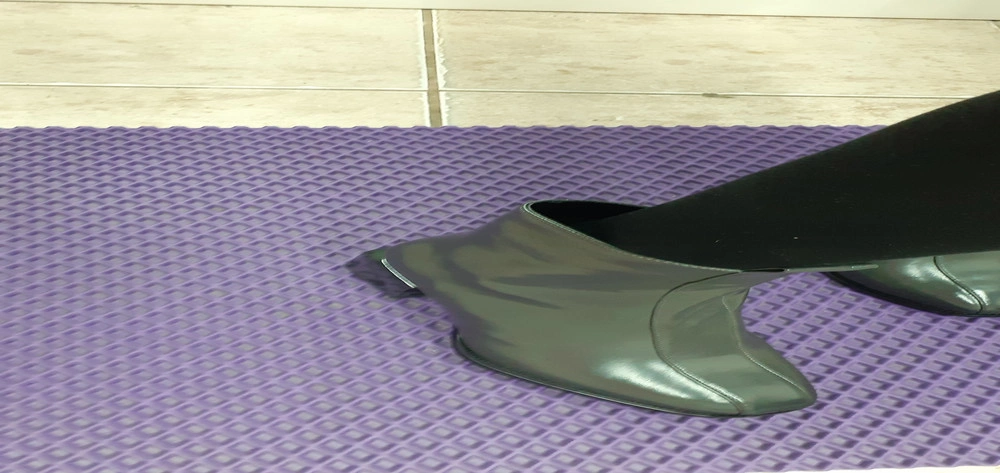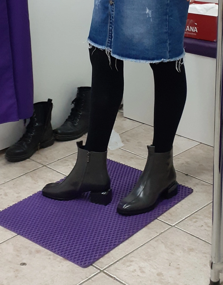 Чтобы измерить длину ступни, необходимо встать на ровную поверхность, слегка касаясь пяткой находящейся сзади перпендикулярной ровной поверхности, например, стены без плинтуса.