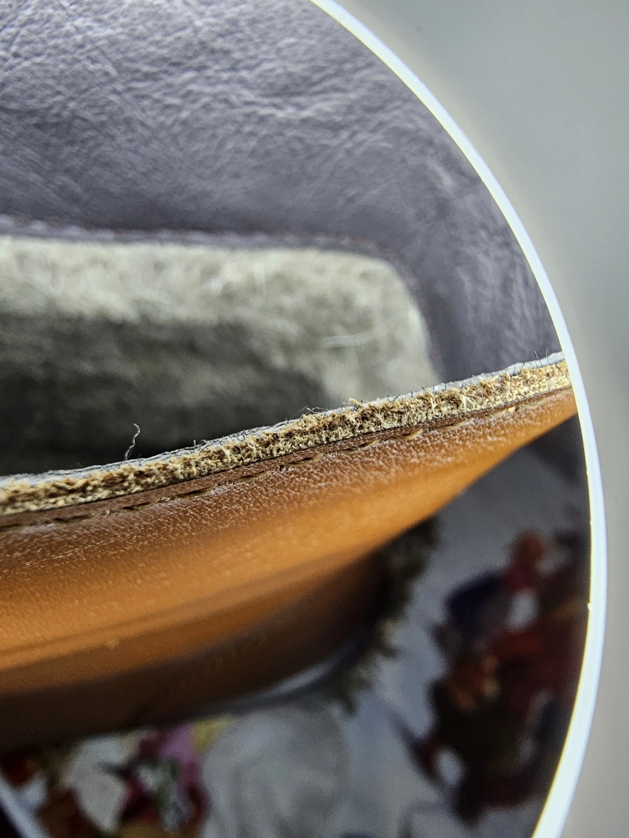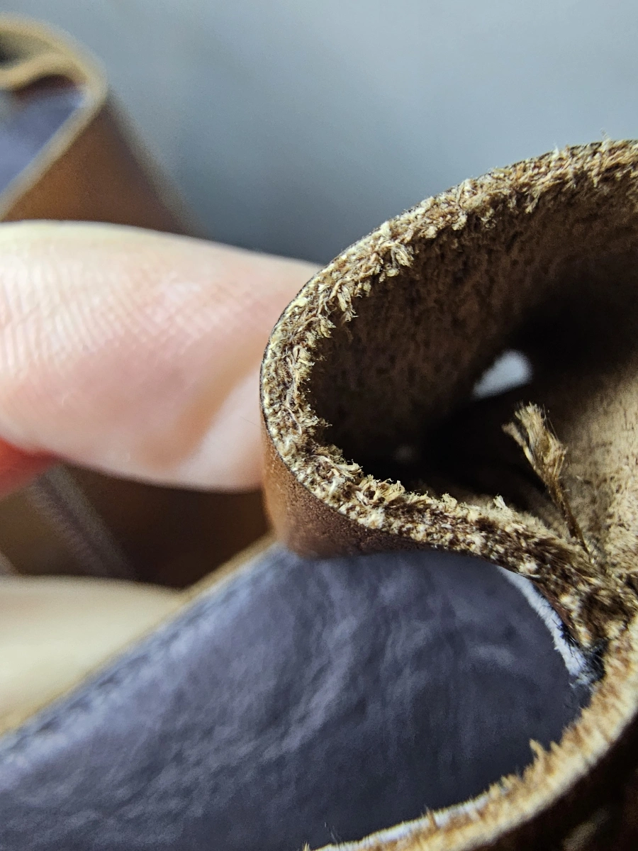 насчёт кожи не знаю, срез не особо получается сфотографировать, снизу будто кожа, а сверху чем-то покрыто. Могу ошибаться, но сомневаюсь что это кожа первого слоя, тем более за такую цену