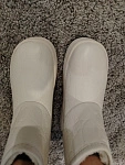 Чтобы измерить длину ступни, необходимо встать на ровную поверхность, слегка касаясь пяткой находящейся сзади перпендикулярной ровной поверхности, например, стены без плинтуса.