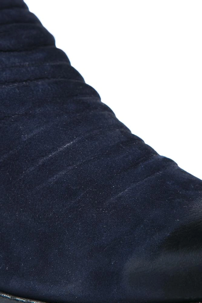 Ботинки странные,даже чудные,такие боты из дублёнки,но в этом что-то есть!Оставила,пусть будут!Планирую носить только под джинсы на выпуск.37 размер на мой 37,5(24,7см)в самый раз.Цвет глубокий синий,подошва толстая,на ней противоскользящие пупры,
