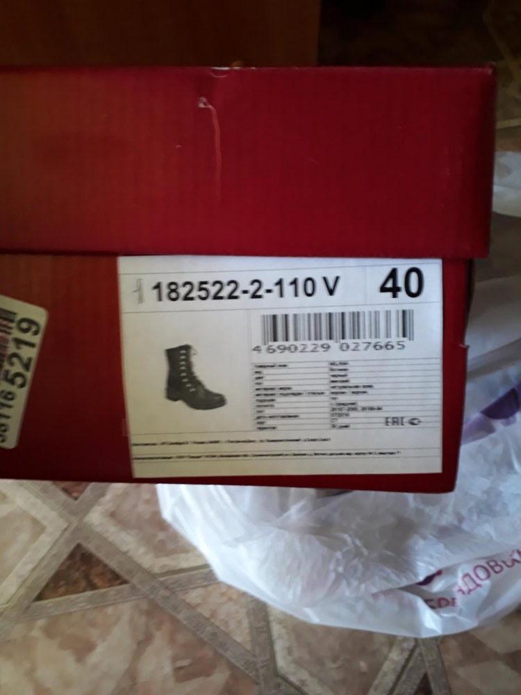 Ботинки отличные, но к сожалению пришли 36-го размера, хотя на коробке был указан размер 40. Перезаказала ещё раз. Прошу не учитывать в проценте выкупа.