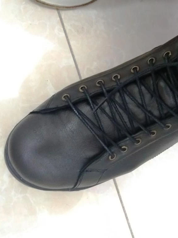 Ботинки отвратительного качества - кривые, прошиты, прострочены неровно, шнуровка перекошена, хорошо видно на фото. Сзади пристрочено криво, впереди наискосок, как будто одну дырку для шнурков не сделали - ужас просто, такие продавали раньше на китайском рынке.