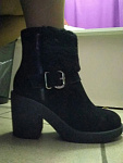 Ну очень понравились, в моем 40 размере (они кстати идут точно в размер) ножка смотрится очень аккуратненько, как 36))). Вверху широковаты, но у меня нога худая, я на это глаза закрыла. Внутри хороший натуральный мех, теплые, надеюсь, подошва скользить не будет