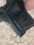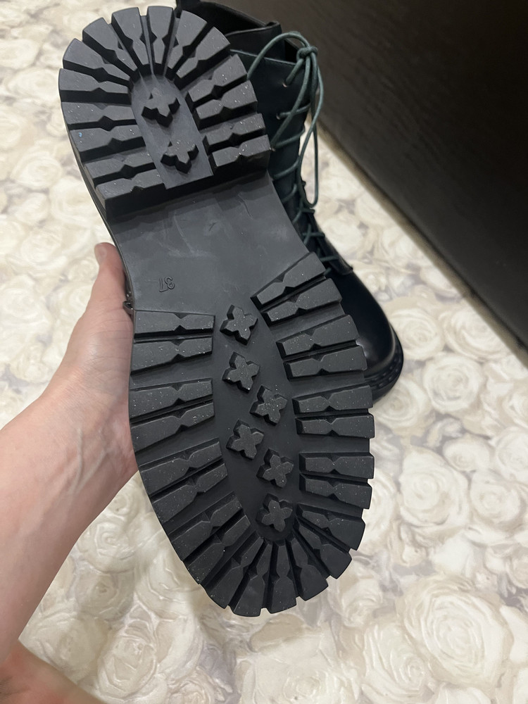 Очень крутые ботинки, цвет черный с зеленым оттенком, легкие, еврозима, не осень, на холодную зиму не подойдут. У меня размер 39,5, подошли 40 размер, можно с тонким носком одеть. Стильно смотрятся.