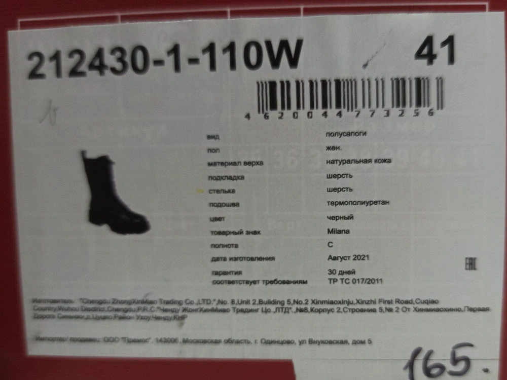 Обувь MILANA производится по следующим меркам. Обувь других брендов может немного отличаться от приведенных ниже замеров.
