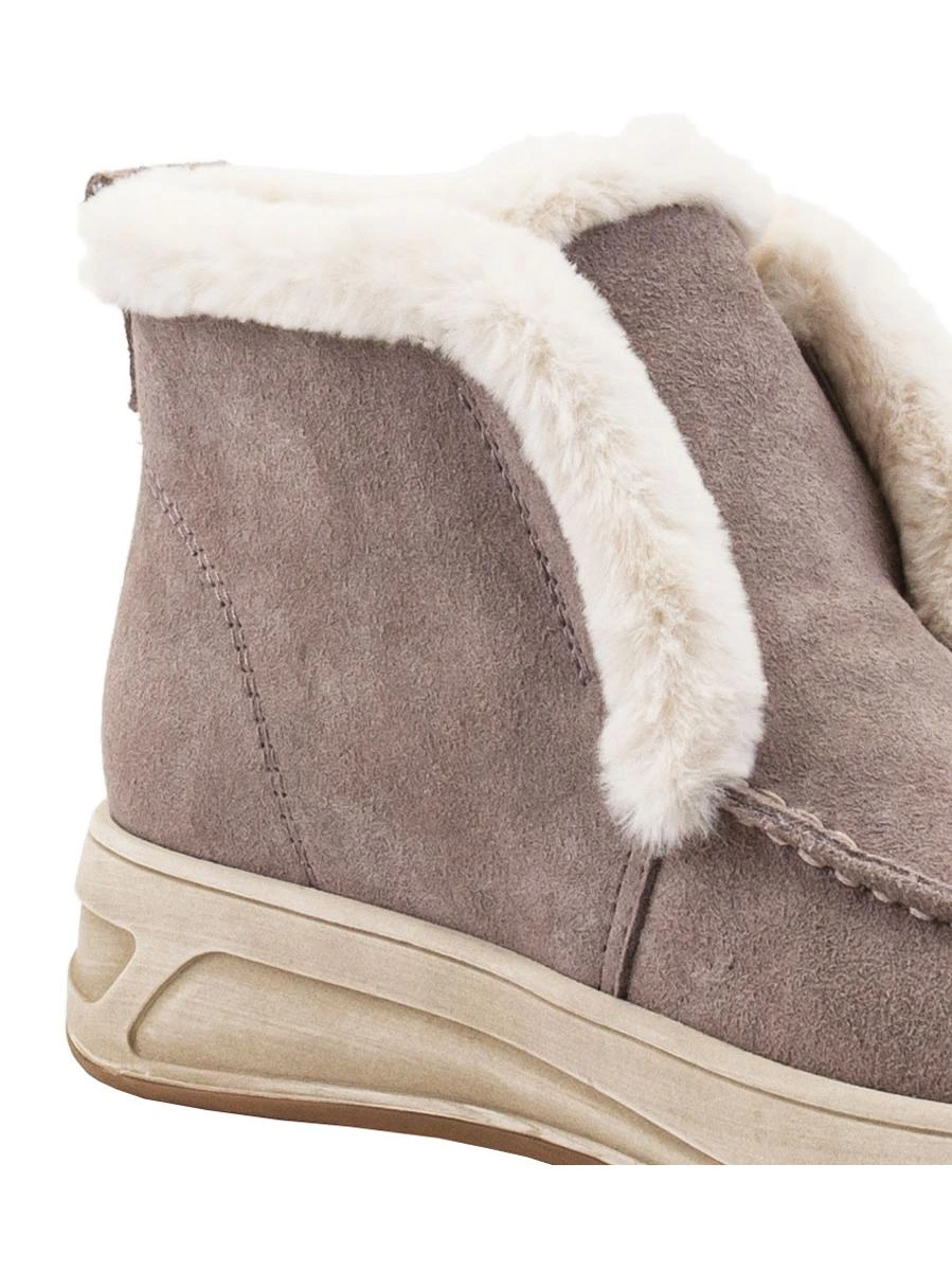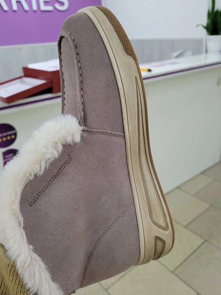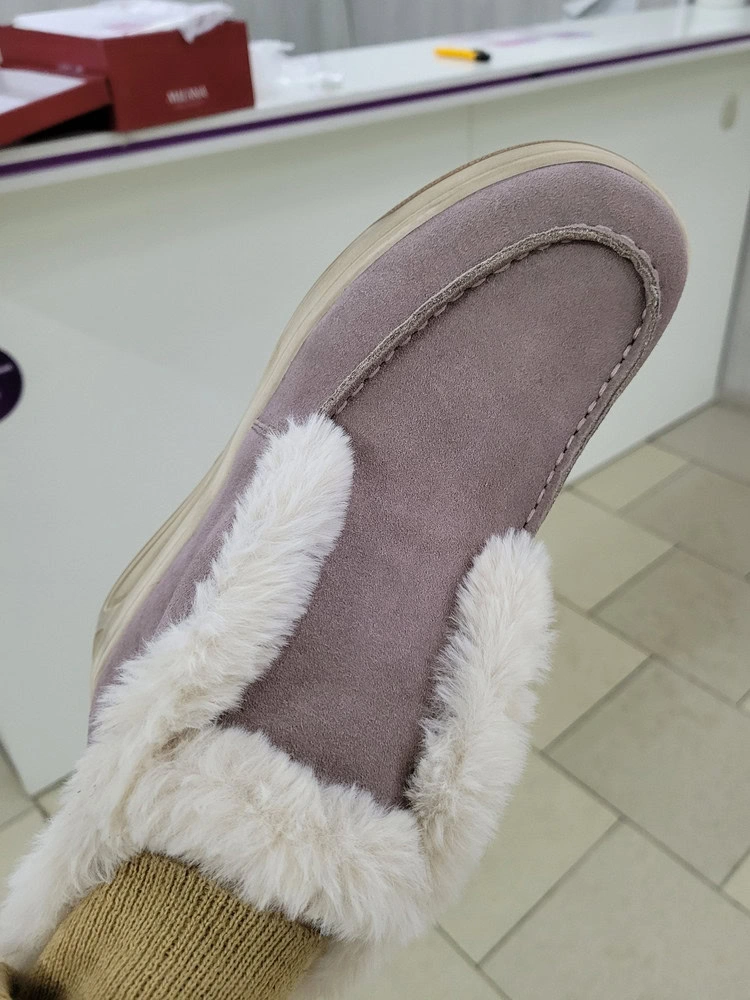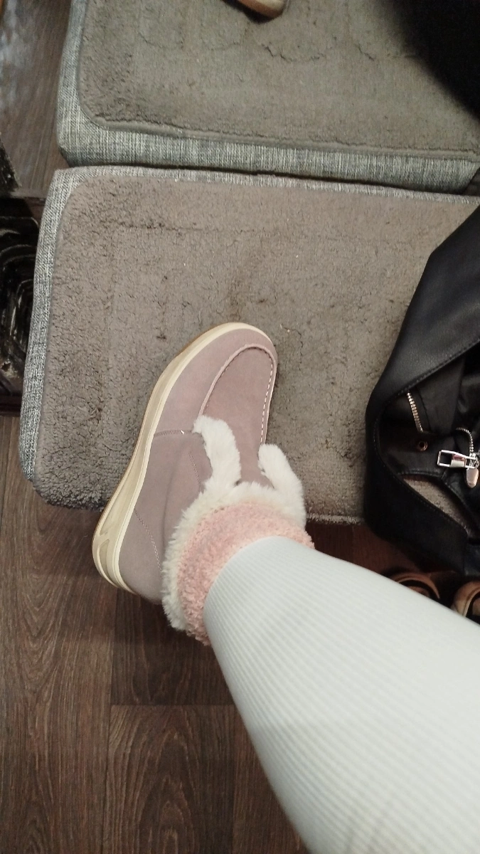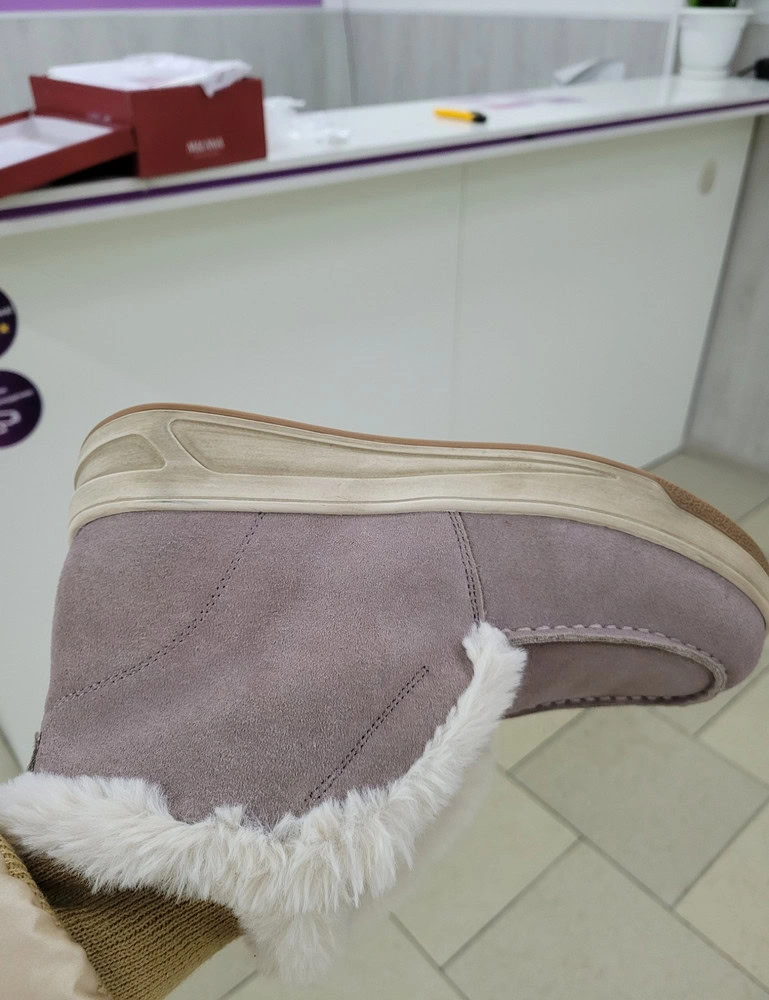 Всё понравилось, качество хорошее, клей нигде не был виден, не воняло как от только что с конвеера, по размеру, ура немного большемерит, на толстый носок самое то. Верх натуральный, мех искусственный кролик))) меня всё устроило, выкупила. Ещё не носила.
