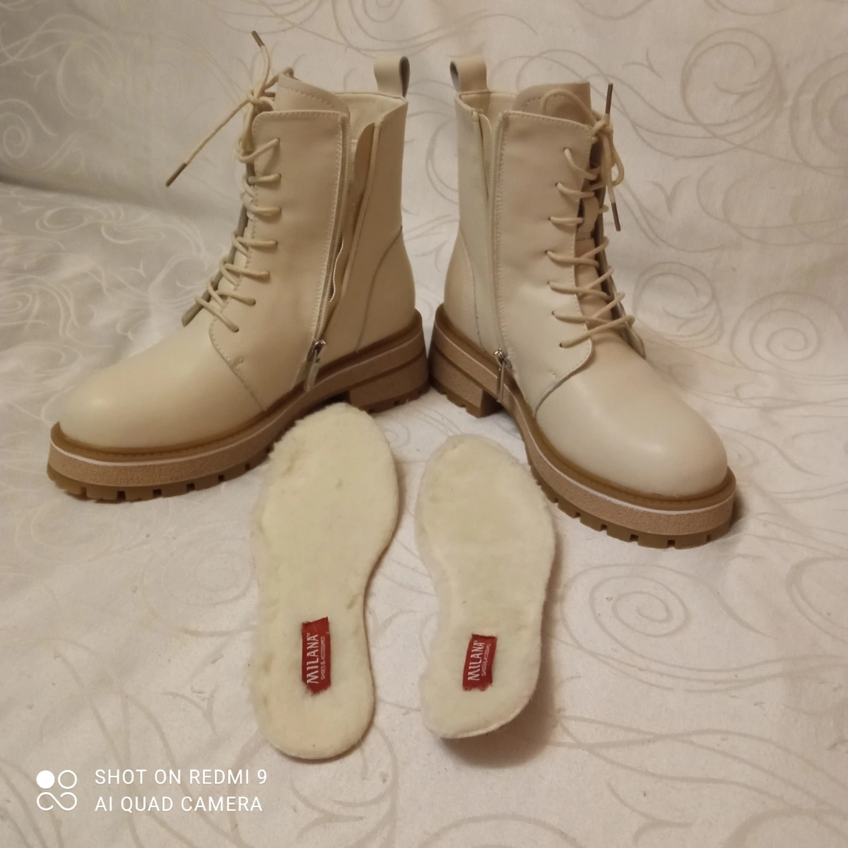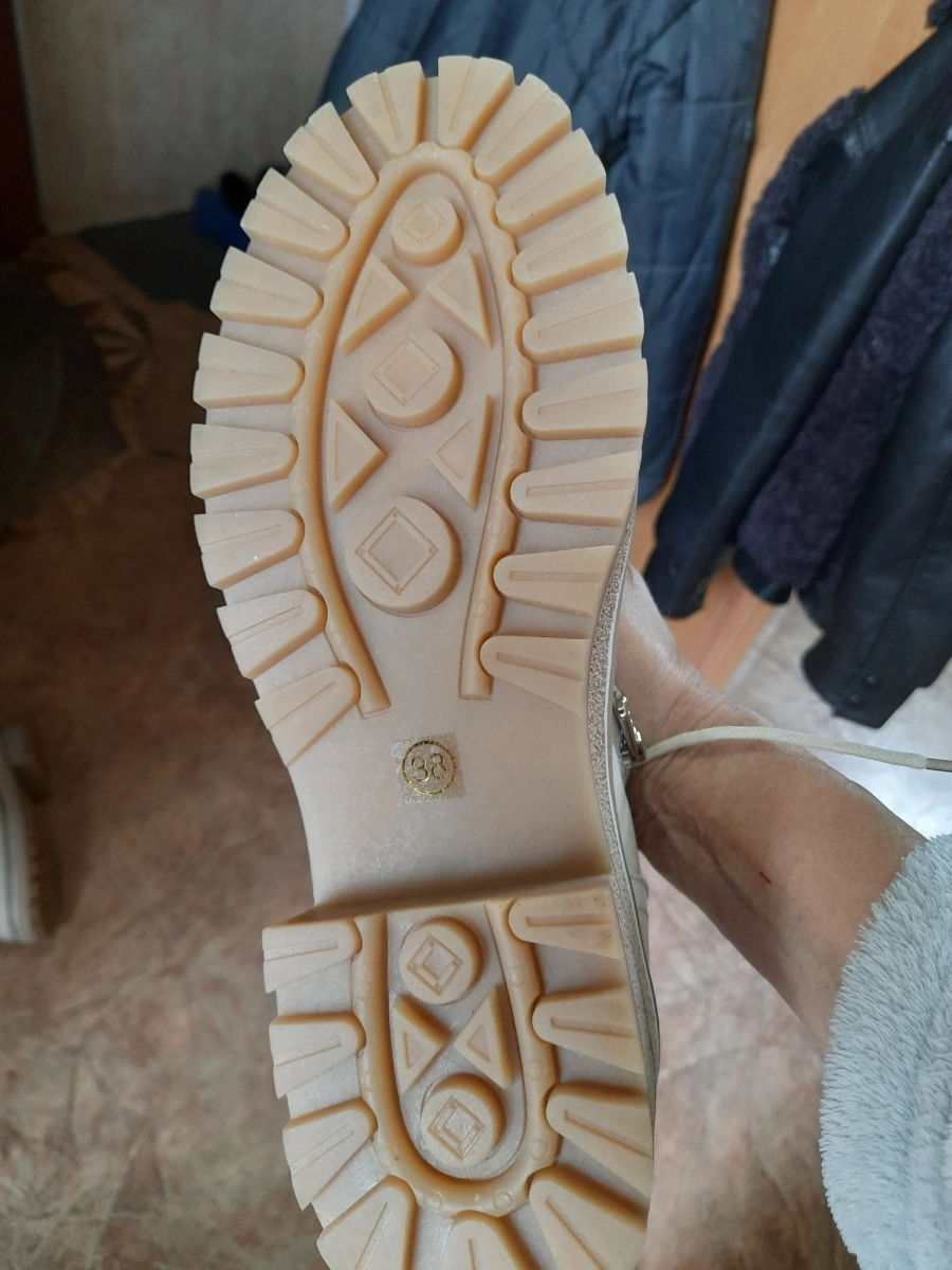 -Главное-не узкие и подошва рифлëная прорезиненная,что для зимней обуви немаловажно. Благодаря наличию и шнурков, и замка нога хорошо фиксирована в ботинке, тем самым, создавая удобство при ходьбе.