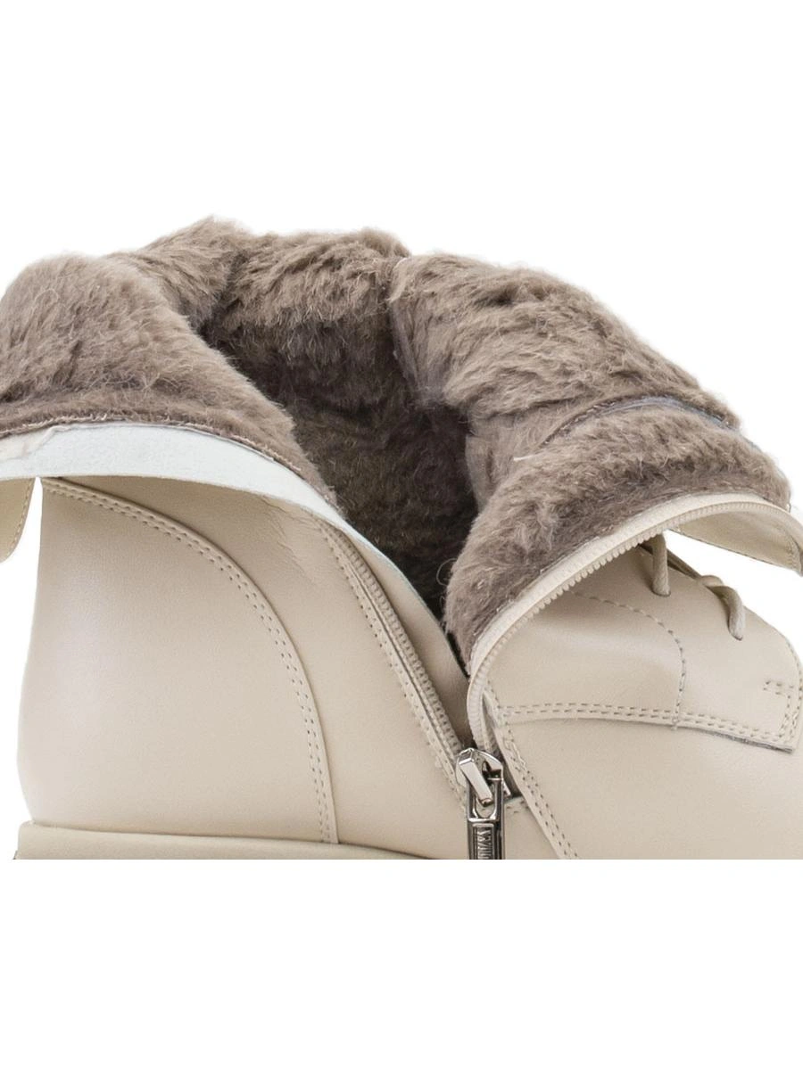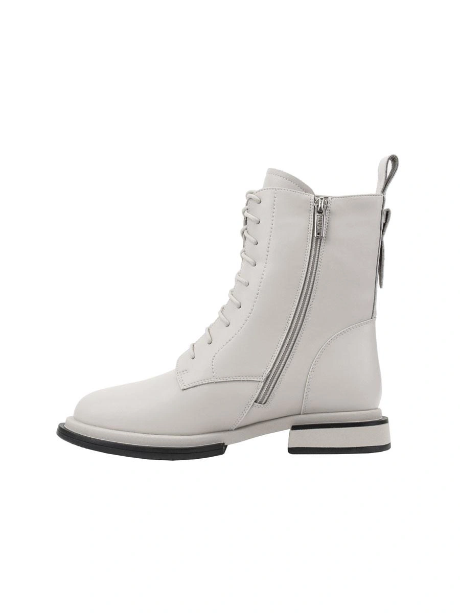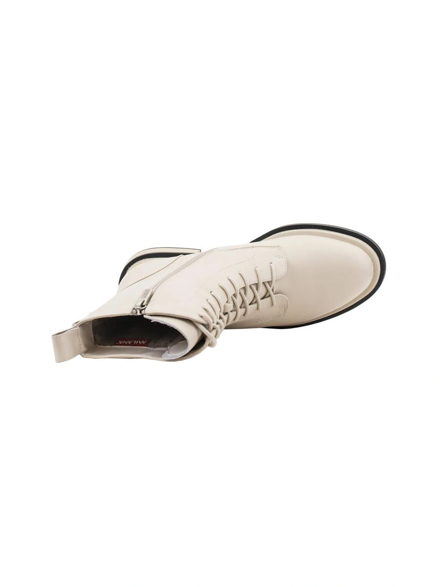 Ботинки зимние женские из натуральной кожи от компании Milana. По-другому называют полусапоги, берцы, гриндерсы. Высота обуви позволит вашим ножкам находиться в тепле, так как внутренняя часть подкладки выполнена из натуральной шерсти. Современный стиль отлично подходит для женщин, девушек, подростков и будущих мам. Модель теплая на холодное время года: зиму, раннюю весну, позднюю осень. Ботинки представлены в базовом молочном цвете, под любой образ и стиль одежды. Это элегантная женская обувь для всех модных трендов года. Сочетаются как с джинсами, так и с платьями любой длины, а также как с легкой курткой, так и с зимним пуховиком. Сочетание комфорта и стиля на зимние дни. Ботинки предназначены для повседневных прогулок, в школу и университет, на работу, в офис и автоледи. Отлично подойдут как для тех, кто любит классическую обувь в образе, так и для тех, кто любит спортивную, удобную для вождения автомобиля. Комфортная колодка плотно фиксируется на ноге благодаря шнуровке, мысок закругленный. Застежка молния обеспечит удобство при одевании и снятии обуви. Ботинки выполнены из высококачественных материалов, они утеплены, непромокаемы и модные. Натуральная кожа позволяет проходить воздуху через материал, поэтому ему не страшны сгибы и растяжки. Стильный и минималистичный дизайн наших зимних ботинок с отделкой из шерсти отлично подчеркивает молочный цвет, а подошва средней толщины и протектор предотвращают скольжение на разных поверхностях. Превосходные амортизирующие свойства материала позволяют избежать усталости ног. Крепкий материал термопластичная резина отлично противостоит истиранию. Кожаная обувь на платформе, которая подойдет для средней стопы и будет удобна для ходьбы по асфальту, льду и грунту. Подходят для беременных и женщин после родов. Дизайн модели разработан в Италии. Ботинки станут отличным подарком вашей сестре, девушке, подруге или дочери на новый год или рождество, 14 февраля, а также маме на день рождения, для вашей любимой на 8 марта.